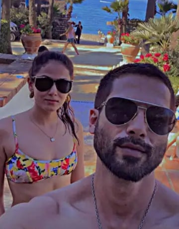 - Shahid shared a beach selfie with Mira on Instagram, showing off their fit physiques and stylish swimsuits.